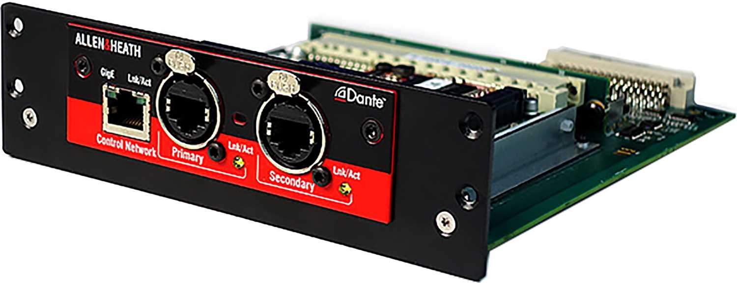 M-DL-Adapt“信箱”接口适用于MixRack或Surface上的任何dLive I/O端口,并增加了与大多数iLive / GLD音频网卡的兼容性,包括M-Dante, M-Waves, M-ES-V2, M-Ace和M-MADI。它提供了一个64×64通道接口运行在48kHz,从而保持与Allen & Heath的iLive和GLD混音系统以及大多数第三方控制台运行的但丁或MADI的兼容性。采样率转换在接口模块中无缝执行。