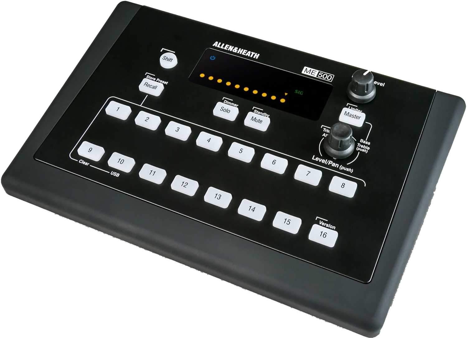 艾伦和希思ME-500 16通道个人监听混频器ME-500个人混音器直观的动手控制和清晰的视觉显示使音乐家可以轻松快速建立和控制自己的监视器混音。随着即插即用的设置和自给自足的音乐家,ME-500也为音频工程师节省了大量的时间。