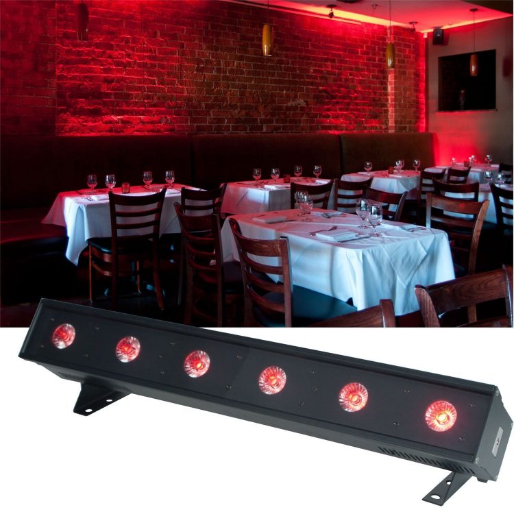 - 超亮,23英寸。5米)室内线性酒吧6 × 10W超亮HEX (RGBWA + UV: 6- in -1) led