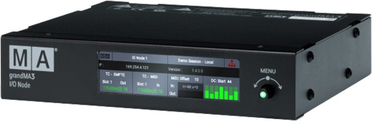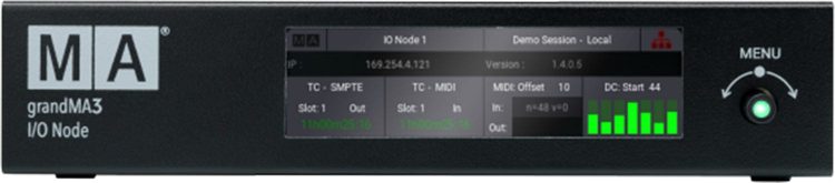 grandMA3 I/O节点是grandMA3照明控制系统中信号分配的多功能工具。无论在哪里生成或需要信号——只需在那里放置一个grandMA3 I/O节点,然后接收或发送外部信号。grandMA3 I/O节点采用与grandMA3 2/4端口节点相同的外壳,也可作为PoE变体(以太网供电)。显示器显示所有输入和输出信号的状态。只需将grandMA3 I/O节点添加为会话成员,它就可以运行了。将外部信号流集成到MA-Net工作流中从未如此容易。一旦grandMA3 I/O节点接收到MIDI,时间码或DC远程信号,这些信号立即在整个grandMA3照明控制系统中可用,并且可以在任何grandMA3的pc或控制台中使用。传输MIDI或时间码信号也是如此。只需添加一个grandMA3 I/O Node,并在本地连接外部信号,将其集成到MA-Net3工作流程中。